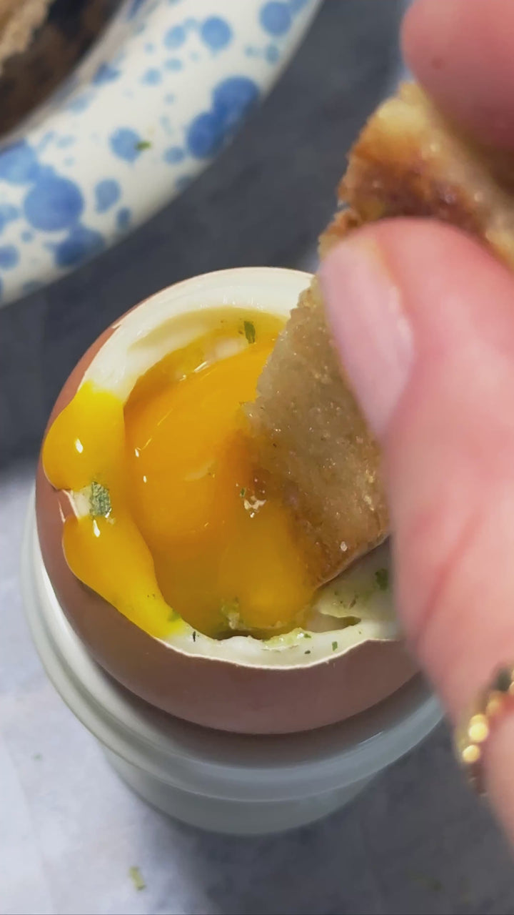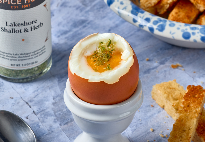 Soft boiled eggs are an easy way to upgrade your breakfast, protein plates, salads, & more! We love to season ours with Lakeshore Shallot & Herb.